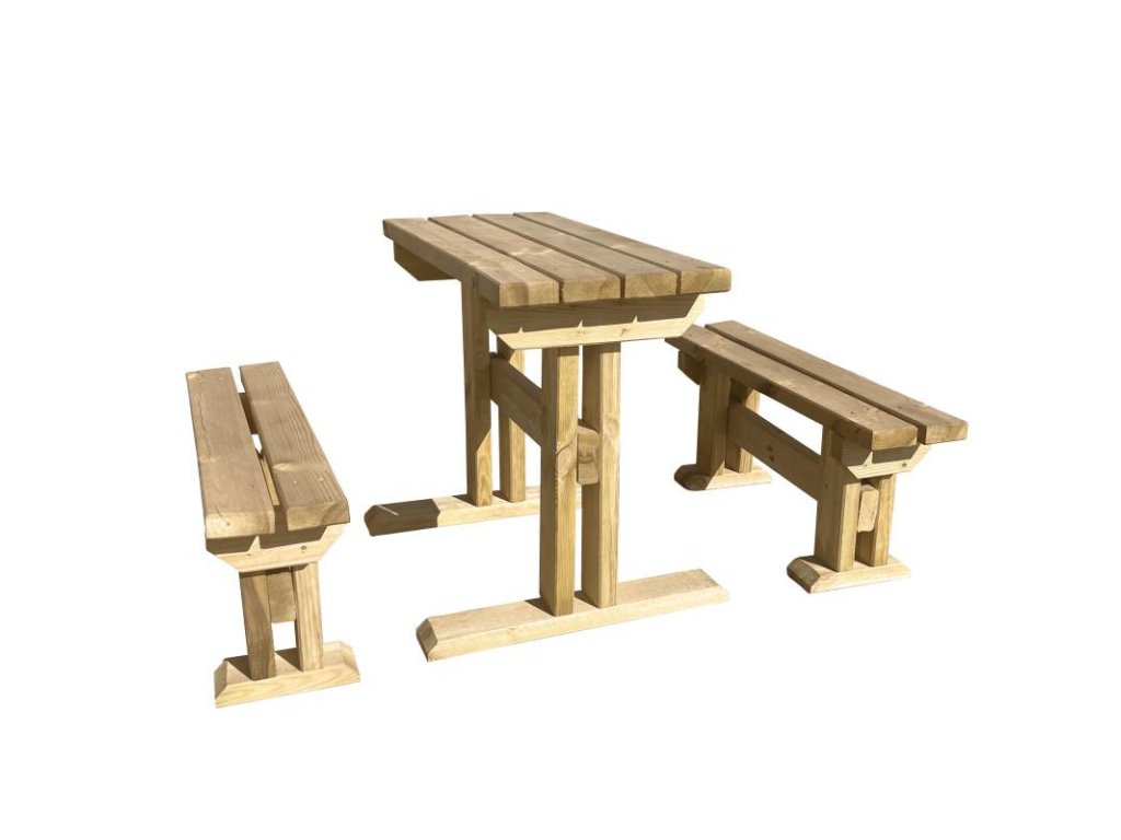 Skvělá varianta pro venkovní posezení pro Vaše děti. Dřevo je ošetřeno tlakovou impregnací.