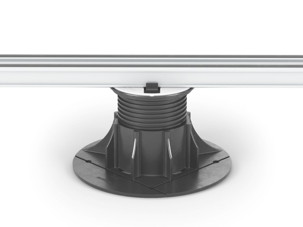 Podložka SEW1 s výškovým rozsahem 37,5–50 mm je určena pro montáž terasových konstrukcí, kde je potřeba stabilní a přesné nastavení výšky. Tento model je ideální pro pokládku terasových nosníků na plochách s mírnými výškovými rozdíly.