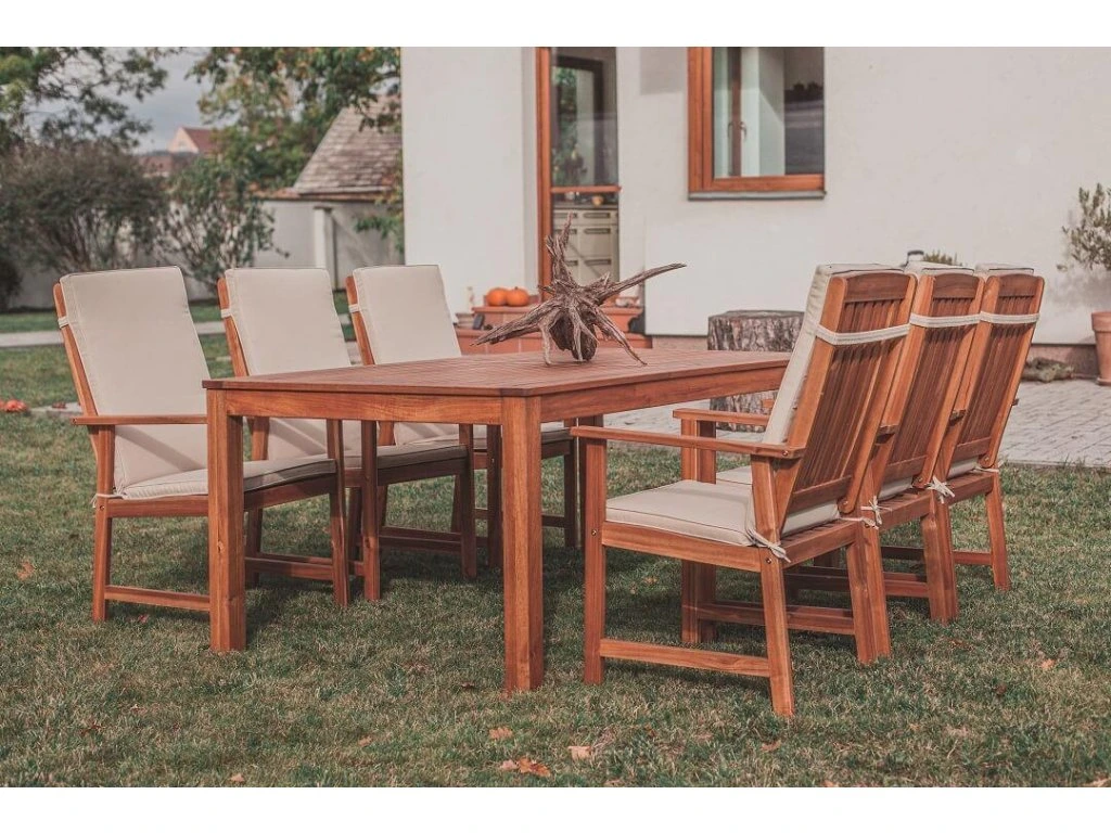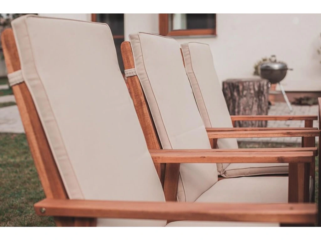Povrchová úprava zahradního nábytku je provedena olejem, který chrání nábytek proti působení povětrnostních vlivů a přimořuje povrch na tmavý odstín. Dřevo je přírodní materiál, jeho kresba a zbarvení je na každém kusu nábytku unikátní. Nábytek je vyráběn tak, aby byl vhodný pro použití ve středoevropských podmínkách, přesto je nutné o něj pečovat a udržovat jej.