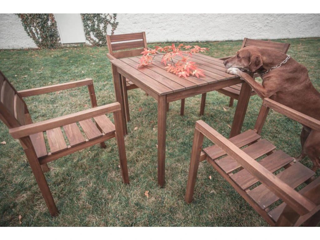 Povrchová úprava zahradního nábytku je provedena olejem, který chrání nábytek proti působení povětrnostních vlivů a přimořuje povrch na tmavý odstín. Dřevo je přírodní materiál, jeho kresba a zbarvení je na každém kusu nábytku unikátní. Nábytek je vyráběn tak, aby byl vhodný pro použití ve středoevropských podmínkách, přesto je nutné o něj pečovat a udržovat jej.
