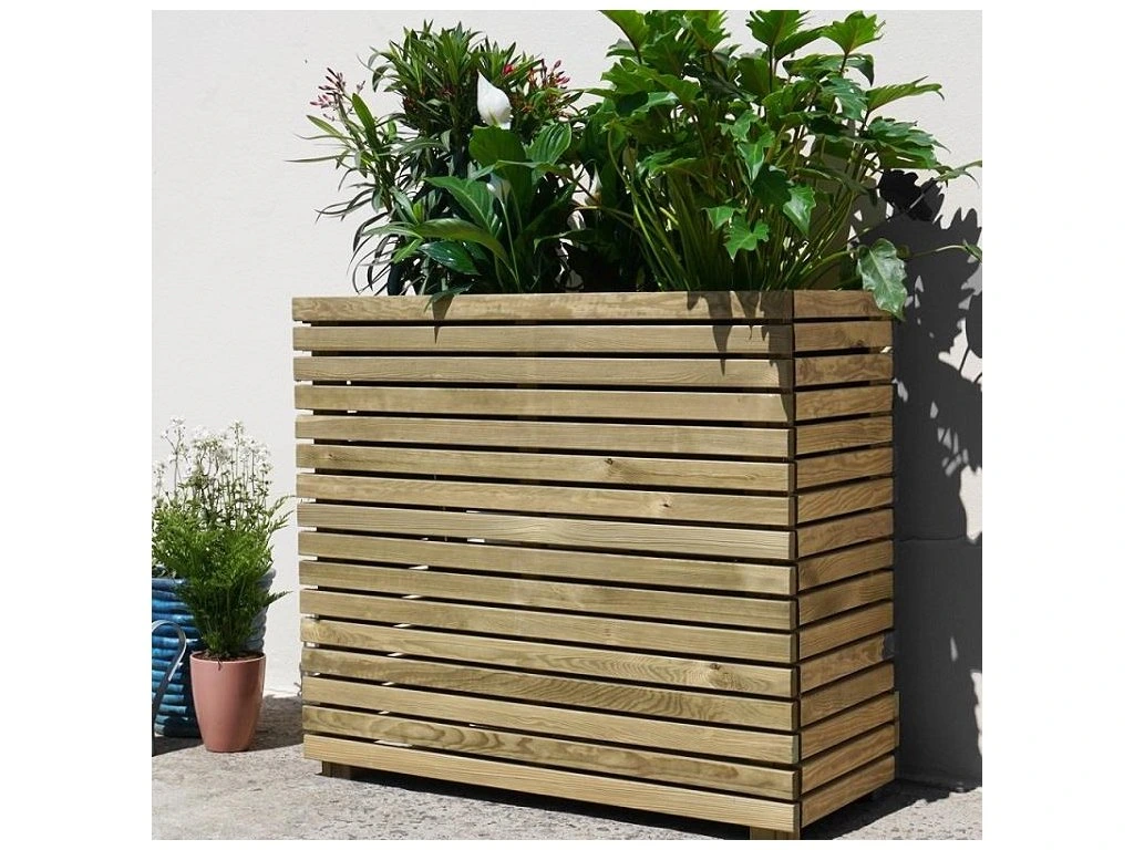 Květináč HORIZON kopíruje jednoduchost a čisté linie. Je složen z rovných tlakově impregnovaných latěk montovaných horizontálně. Obsahuje 3 plastové vložky o celkovém objemu 40,5l. Vhodný pro optické rozdělení nebo ohraničení terasy nebo jiného venkovního prostoru.