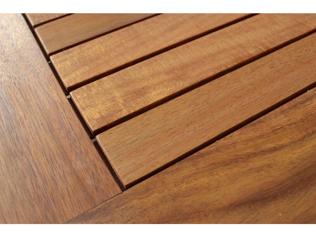Povrchová úprava zahradního nábytku je provedena olejem, který chrání nábytek proti působení povětrnostních vlivů a přimořuje povrch na tmavý odstín. Dřevo je přírodní materiál, jeho kresba a zbarvení je na každém kusu nábytku unikátní. Nábytek je vyráběn tak, aby byl vhodný pro použití ve středoevropských podmínkách, přesto je nutné o něj pečovat a udržovat jej.
